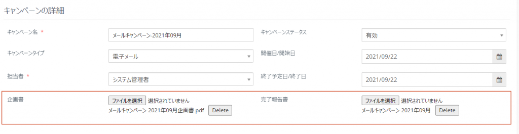 ドキュメントもキャンペーンデータと紐付け管理することで、前回の情報を簡単に確認することができるようになります。